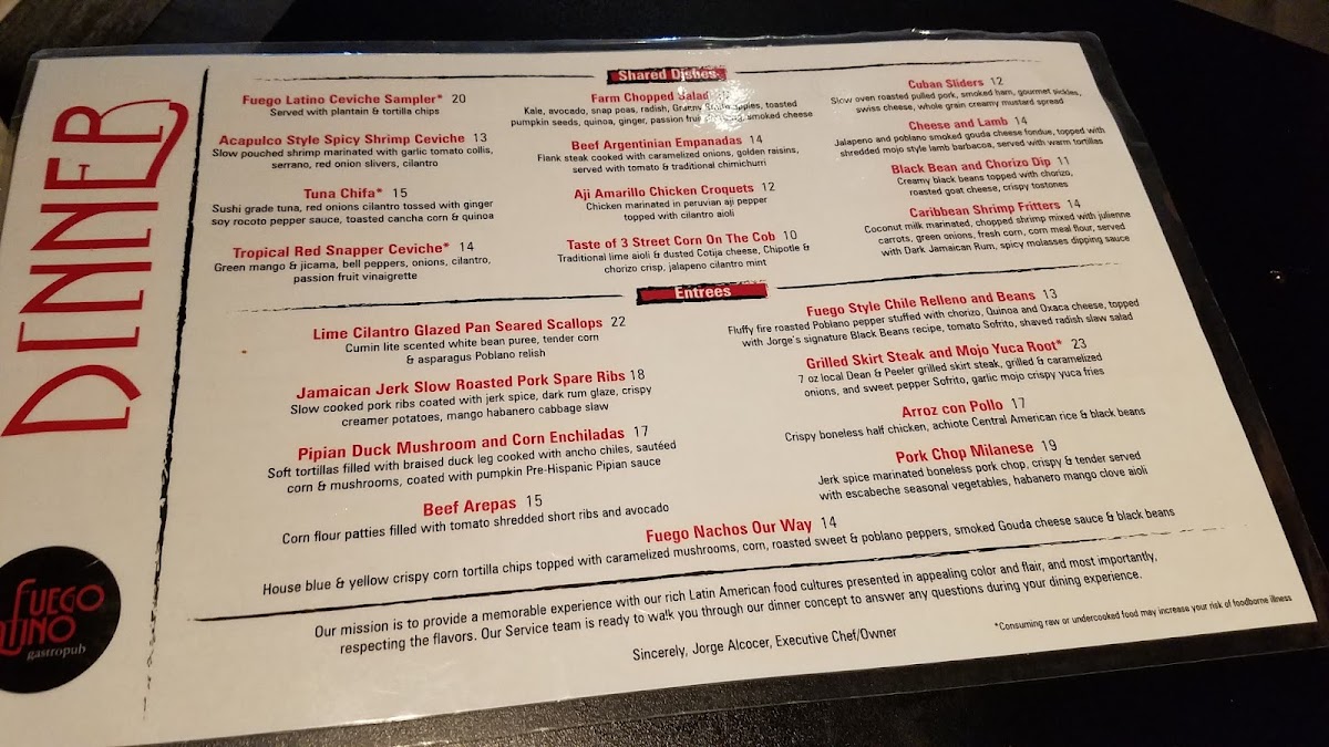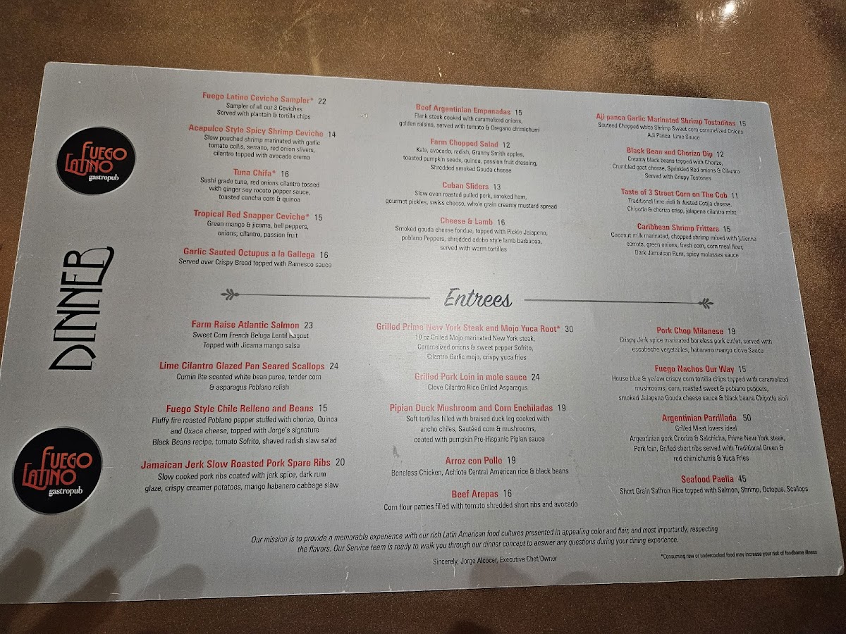 Fuego also boasts an impressive drink selection, including sparkling wines and exquisite reds. Reviews highlight not only the exceptional flavors but the warm and inviting service, making Fuego Latino Gastropub a hidden gem you won't want to miss!